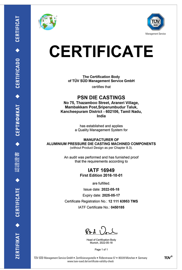 The PSN Die Casting was established in 2015 promoted by Mr.M.Prakash with vast experience in Pressure Die Castings components catering to automobile segment in and around Chennai.